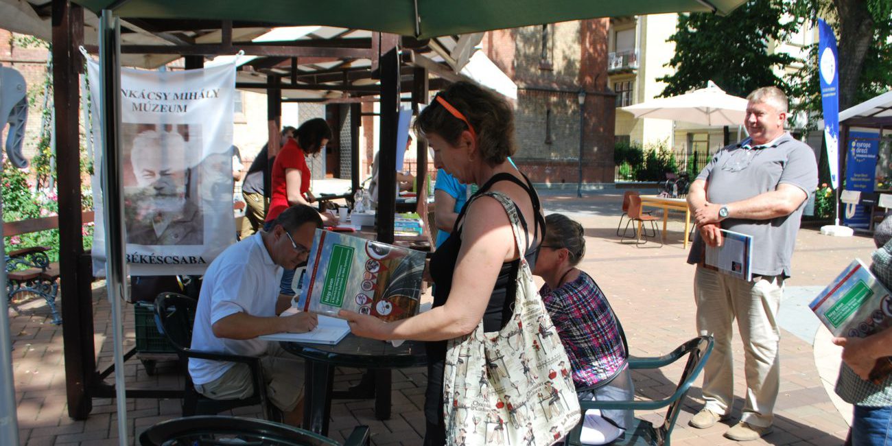 A múzeum dedikáló standja június 13-án sem maradt üresen, hiszen dr. Bácsmegi Gábor régész kollégánk a Négy sávon a Munkácsy Mihály Múzeum régészeti kutatásai az M44 nyomvonalán című legújabb évkönyvünket népszerűsítette.