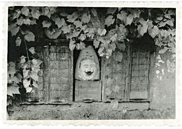 Méhes kaptárakkal, emberfej alakú kassal. A kaptárt szarvasi méhkas mintájára készítették.