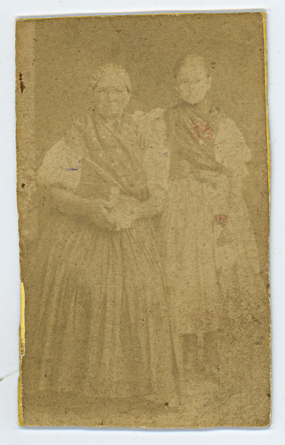 Csiaki Andrásné és Csiaki Mária, kisbirtokos felesége és lánya, 1880 körül.