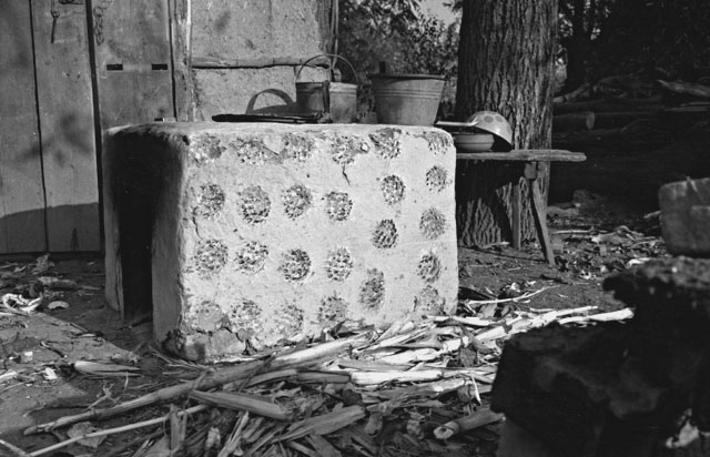 (Alapszín: sárgaföld, “penclivel” rányomott fekete, fehér, téglavörös minta.).