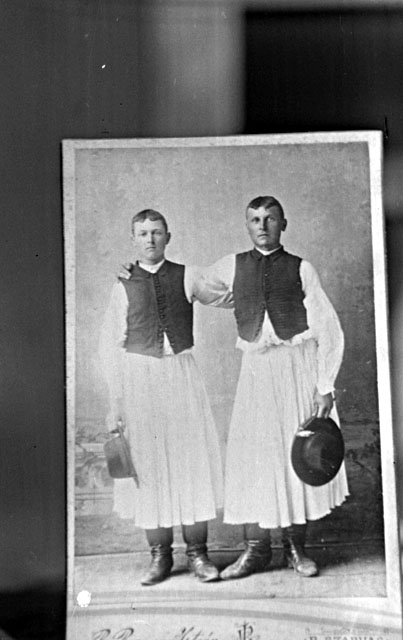 Szarvasi népviselet. Szekerka János és Janurik András, 18 éves legények, 1876-ban