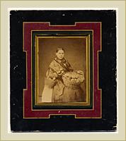 Keretezett fénykép. Leány viseletben, 1880-as évek.
