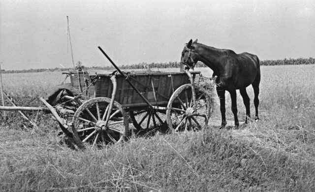 Kocsi kifogott lóval. Tábori György felvétele.