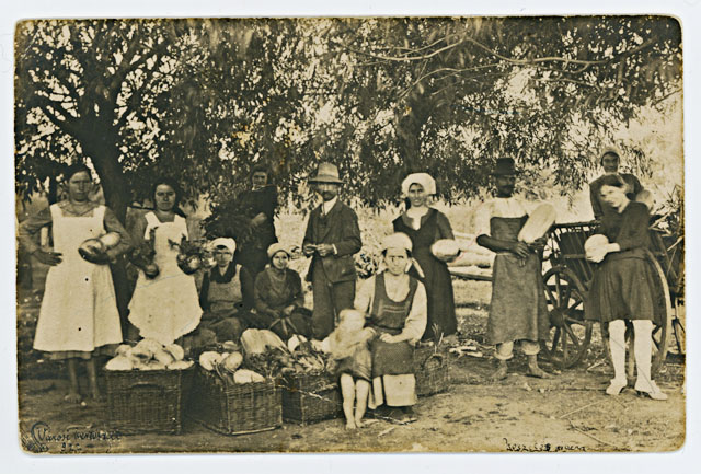 A 40 holdas Városi kertészet áruinak előkészítése piacra. 1924-ben. Középen Árvási József, főkertész.