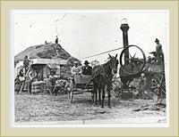 | Esküvői kép, Zelenyánszki Mihály (12 holdas gazda) és Botyánszki Mária, 1917. | Cséplőgép 1930. | Cséplőgép Bagyinka György kazánja, 1940. |