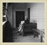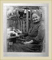 Ruzicska Györgyné, 91 éves festőasszony. Nyári konyha.