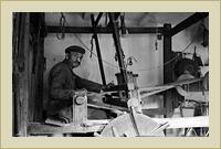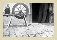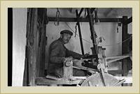 Justh János, békési szövőmester. Tábori György felvétele. | Gombolyító Justh János békési szövőmester házában. Tábori György felvétele | Motolla, a békési szövőmester házában. |