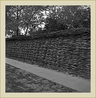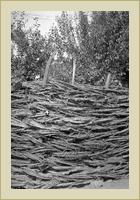 Fűzvesszőből font kerítés. Tábori György felvétele. | Fűzvesszőből font kerítés. Tábori György felvétele. | Ködmönhímzés mintája. |
