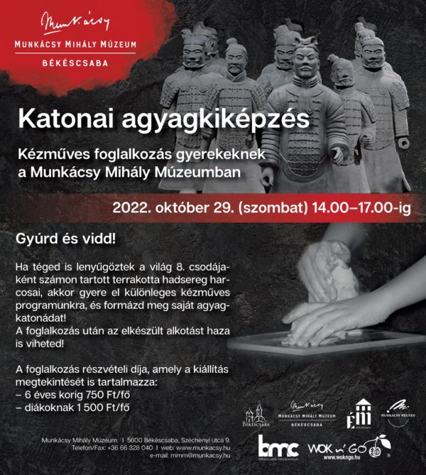 Szeretettel várjuk a családok apraját-nagyját 2022. október 29-én, szombaton 14.00–17.00-ig a Terrakotta hadsereg. Az első császár üzenete című tárlatunk záró hétvégi kézműves programjára. A résztvevők ez alkalommal is elkészíthetik saját agyagkatonáikat, melyeket a foglalkozás után haza is vihetnek. A részvételi díj, amely a kiállítás megtekintését is tartalmazza: – 6 éves korig 750 Ft/fő – diákoknak…