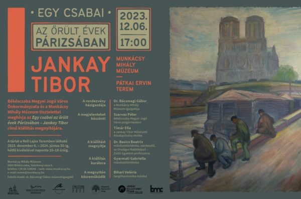 „Egy csabai az őrült évek Párizsában – Jankay Tibor” címmel 2023. december 6-án, szerdán 17.00-kor nyitja meg kapuit múzeumunk következő képzőművészeti időszaki kiállítása. A megnyitó eseményre szeretettel várunk minden érdeklődőt! A meghívó nagyobb méretben való megtekintéséhez kattintson a képre!