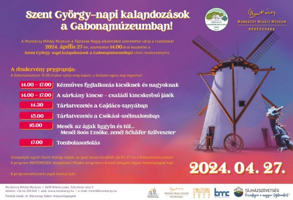 A Munkácsy Mihály Múzeum a Tájházak Napja alkalmából szeretettel várja a családokat 2024. április 27-én, szombaton 14.00 órai kezdettel a Szent György-napi kalandozások a Gabonamúzeumban! című rendezvényére, a Gyulai út 65. szám alatt található Csabai Tanya és Gabonatermesztés-történeti Kiállítóhelyre. A program INGYENESEN látogatható! Minden rendezvényre érkező látogató ingyen tombolajegyet kap. A nagyobb méretben való…