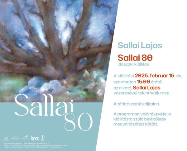 Szeretettel várjuk az érdeklődőket 2025. február 15-én, szombaton 15.00-tól soron következő programunkra, amelynek keretében Sallai Lajos képzőművész tart tárlatvezetést „Sallai 80” című időszaki kiállításában. A tárlatvezetés díjtalan. A részvétel a kiállításra szóló belépőjegy megváltásához kötött. A nagyobb méretben való megtekintéshez kattintson a képre!