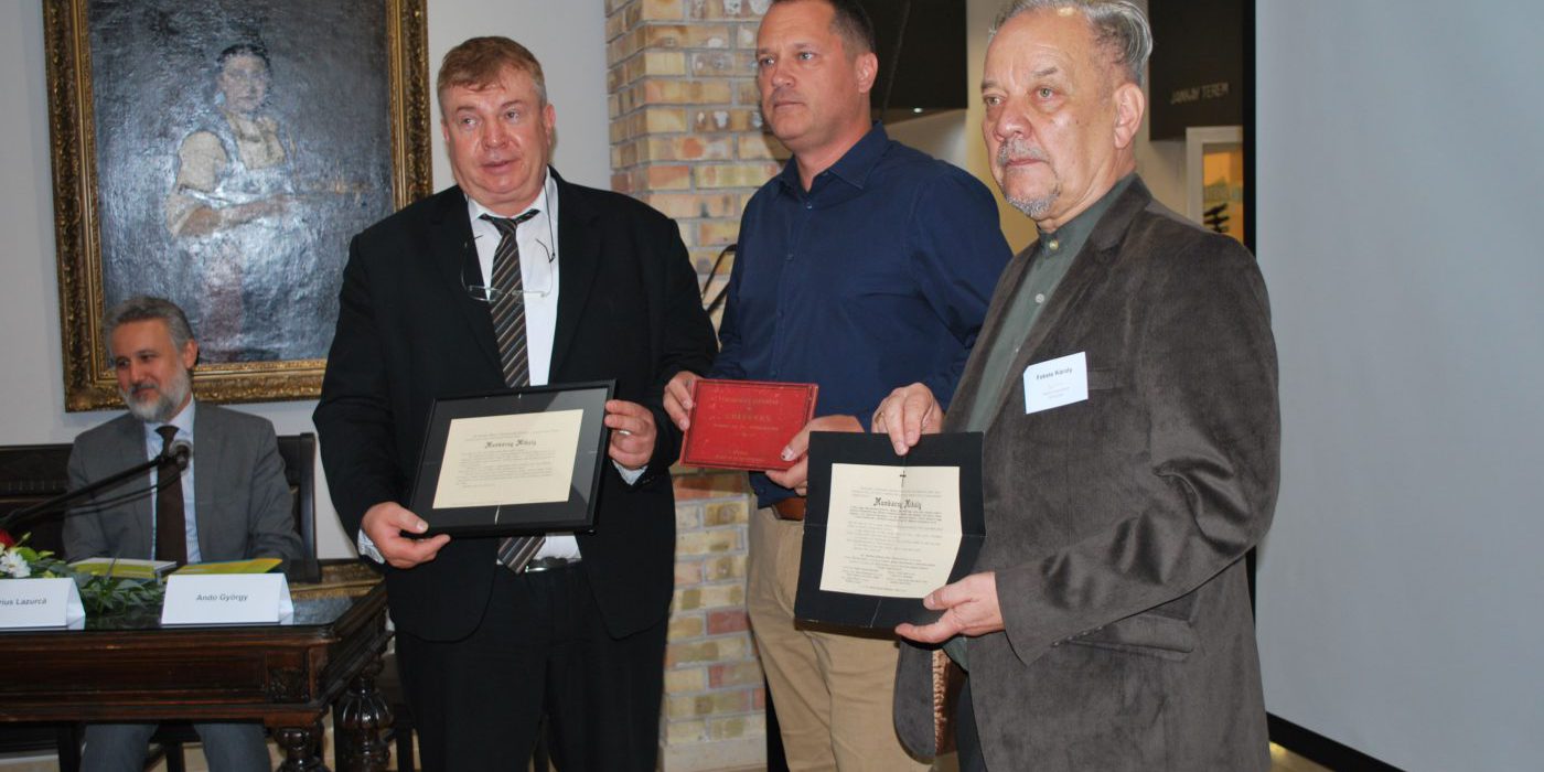 - Ando György múzeumigazgató Sarnek Tamás és Fekete Károly adományozókkal