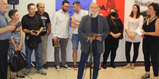 A XIV. Békéscsabai Nemzetközi Művésztelep megnyitója: középen Gnandt János, a Békéstáji Művészeti Társaság nemrégiben kinevezett elnöke, jobbra Gyarmati Gabriella művészettörténész