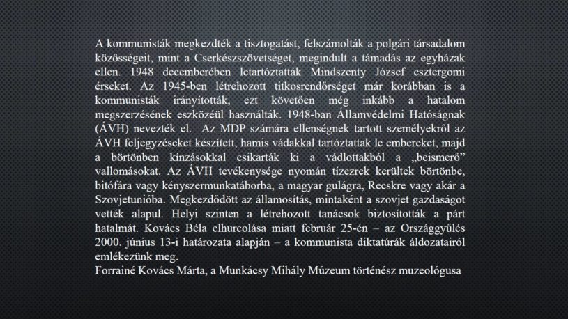A Munkácsy Mihály Múzeum rövid összeállítással emlékezik meg a Kommunizmus Áldozatainak Emléknapjáról.