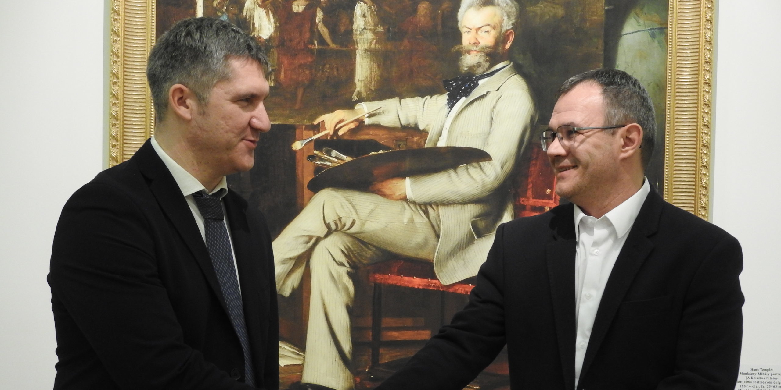 Nemrégiben vette fel múzeumunkkal a kapcsolatot a Munkácsy Mihály Magyar Ház, Munkácsról. Szóba került egy együttműködési lehetőség a két intézmény között, ezért ennek átbeszélésére, illetve a közös gondolkodás elindítására dr. Bácsmegi Gábor múzeumigazgató és Fülöp Máté régész elutazott Munkácsra. Tarpai József, a Munkácsy Mihály Magyar Ház igazgatójának meghívására részt vettek Munkácsy Mihály szobrának koszorúzásán is, majd dr. Bácsmegi Gábor egy előadásban mutatta be a Munkácsy Mihály Múzeumot, illetve szólt a festőfejedelem Csabán töltött éveiről is. Az ünnepség és az előadás után – melyeken jelen volt Albertné Simon Edina konzul asszony az ungvári főkonzulátusról és Gyebnár István misszióvezető a beregszászi konzulátusról – egy spontán eseményre is sor került. A helyi diákokból álló Kolibri Csoport mutatta meg legújabb, szemet gyönyörködtető alkotásait a békéscsabai vendégeknek. A vacsora előtt még látogatást tettek az Erdélyi Béla alkotóházban is, ahol jelenleg menekült művészek élnek és alkotnak. A vacsora során szóba kerültek az együttműködési lehetőségek, mind előadások, tablókiállítások, mind virtuális kiállítások terén. A két intézmény közösen szeretné méltóképpen megünnepelni névadója születésének 180. évfordulóját, ezért szóba került, hogy a Békéscsabán látható, a munkácsiak által készíttetett ezüstkoszorú leendő másolata Munkácsra kerüljön. Felmerült még a gazdag kárpátaljai és békéscsabai képzőművészeti élet közelebb hozása, illetve a turisztikai együttműködés lehetősége is. Az első lépéseket megtettük…