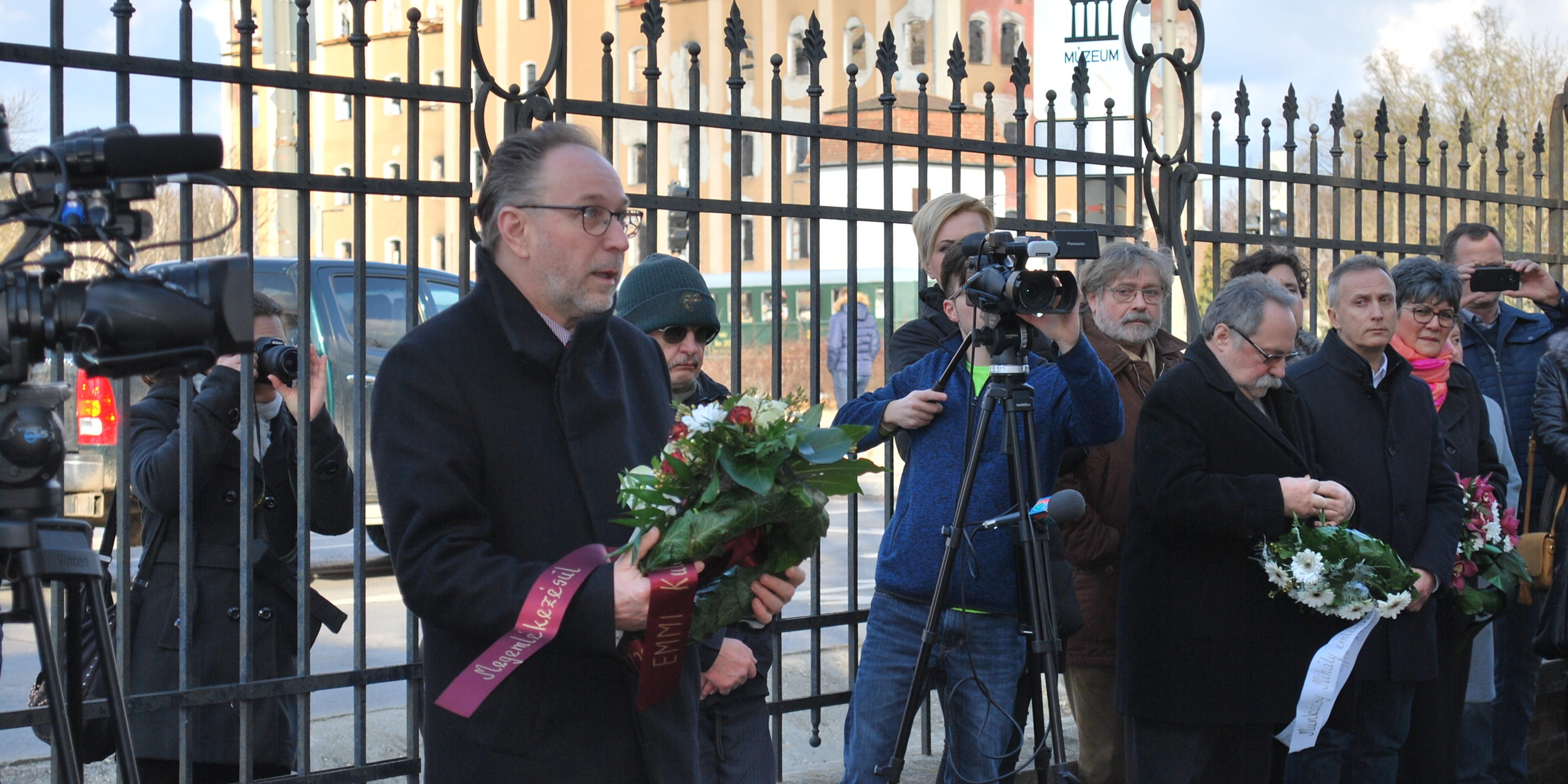 Koszorút helyezett el az Emberi Erőforrások Minisztériuma Kultúráért Felelős Államtitkársága nevében Fekete Péter államtitkár, a Békés Megyei Kormányhivatal nevében dr. Rákóczi Attila főigazgató, Békéscsaba Megyei Jogú Város Polgármesteri Hivatala nevében Varga Tamás alpolgármester, a Csabagyöngye Kulturális Központ nevében Szente Béla intézményvezető, Békéscsaba Megyei Jogú Város Önkormányzat Közgyűlésének Kulturális, Köznevelési és Érdekegyeztetési Bizottsága elnöke, valamint Opauszki Zoltán önkormányzati tanácsnok, a Békéscsabai Turisztikai Egyesület elnöke, a Tőketerebesi Dél-Zempléni Múzeum és Kulturális Központ nevében Beata Kerestenova intézményvezető és Margita Bandolova a Tőketerebesi Levéltár igazgatója, a Munkácsy Mihály Múzeum nevében Martyin Emília osztályvezető asszony és Gyarmati Gabriella művészettörténész.