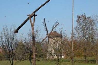 A megyerendezések előtt Makó város határához tartozó, ma Békéssámson határában lévő Csókás pusztáról telepítették át a szélmalmot. Csókás puszta egy, a török hódoltság idején elpusztult község nevét őrzi. Ennek a pusztának 507.számú tanyájáról származó szélmalmot Vajnai Pál építtette két pár malomkőre 1856-1860 között. A malom vonzáskörzetébe kb. 100 tanya tartozott. Az 1890-es években három pár kőre építették át. Évi teljesítménye: 15-16 vagon termény őrlése, darálása. Későbbi tulajdonosai voltak Molnár István és Bokor Mihály. A Kiss család tulajdonában 1953. november 30-án őrölt utoljára. A szélmalom 2019-ben jelentős felújításon esett át. A rekonstrukció alkalmával megújult a malom tetőszerkezete, falai, valamint a malom belsejében található faszerkezetek is. Továbbá négy darab teljesen új, az eredetivel megegyező, egyenként mintegy 1 tonnás, több mint 9 méter fesztávolságú vitorla is felkerült a korábbi helyére. Ezzel a szélmalom visszanyerte korábbi fényét és újra régi pompájában látható.