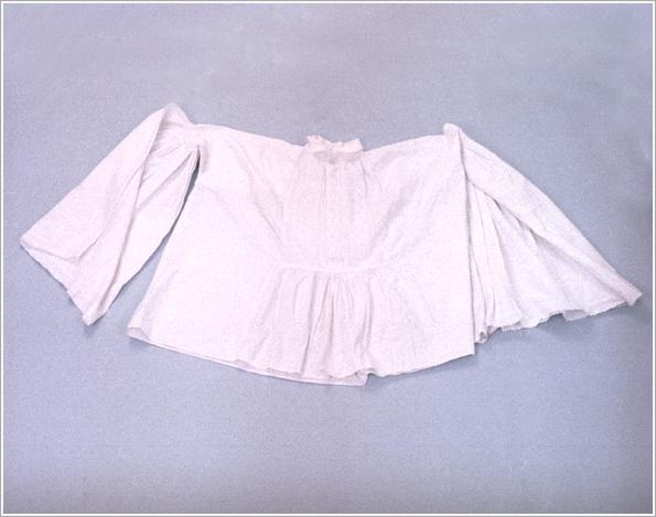 "Origin: Békéscsaba Technique: Sewed from white home linen, white embroidery at the front, narrow vertical ""pié"", gathered at the elbow. Size: W: 200 cm L: 64.5 cm"
