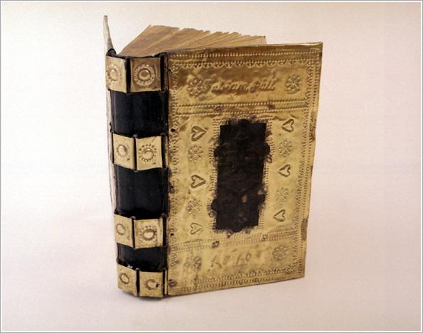 "Lutheran book of songs, published in 1900 printed with Gothic letters, copper fittings on the cover, dotted writing: ""Fabian Pall 1910"" Size: L: 23.5 cm W: 15.5 cm H: 4 cm"
