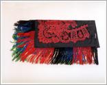 shawl Origin: Tótkomlós Technique: A shawl, sewed from manufactured blue, white, red, green-flowered black silk with long fringes. Size: L: 168 cm W: 166 cm |