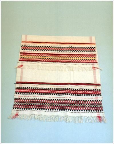 Origin: Békéscsaba Technique: Homespun with hand made fringes, red, yellow, black stripes on both ends. Size: L: 103 cm W: 46 cm