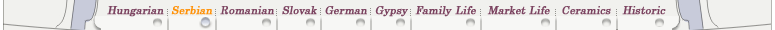 This time the indoor world of Serbian homes was featured by the furniture that shows strong civil likes and was made by masters. The ethnic specialities of their home culture were fulfilled in the clean room which had representative functions. The objects of folk religions and grace received special attention here, like icons of pravoslavonian saints such as Saint Nicholas, Christening Saint John, Saint Czirjék, Saint Demeter, the woollen and cotton homespun which expresses the taste, knowledge and hard-work of the lady and the daughter of the house. From this aspect the homes of the people in Battonya show relative features with the Serbian homes along the river Maros.