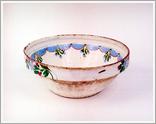 dish Origin: Békéscsaba Technique: Cream-coloured, glazed ceramic pot with blue flowers and leaves on the outer rim and the side. Size: H: 13.5 cm bottom: 19 cm Orifice: 35 cm |