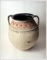 canvas pot Origin: Békéscsaba Technique: Fire-proof, two-handled, a wedding pot from Gömör, ornaments of fingerprinted ribbons on the shoulder. Size: H: 58 cm Diag: 27.5 cm |