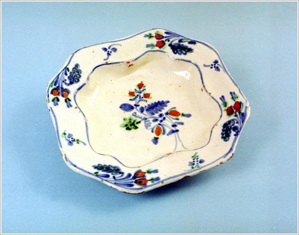 Origin: Tótkomlós Technique: White-glazed ceramic plate with red and blue flowers.Size: H: 6 cm Orifice: 25 cm Bottom: 12 cm