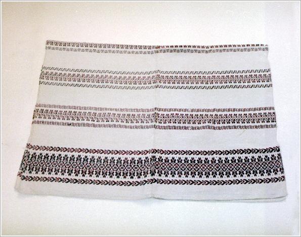 Origin: Békéscsaba Technique: White homespun, made from black and red cotton with the motif of weaved cross-fibred stripes Size: L: 146 cm W: 104 cm