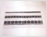mourning cloth Origin: Békéscsaba Technique: Homespun made of white cotton yarn, cross-fibred embroidery and ham-stiching on both ends. Size: L: 152 cm W: 47 cm |