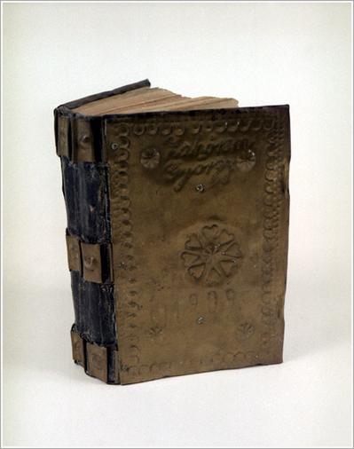 Origin: Békéscsaba Technique: Lutheran book containing funeral songs written in Slovakian, printed in 1909, has copper fitting on the cover. Size: L: 15 cm W: 10 cm