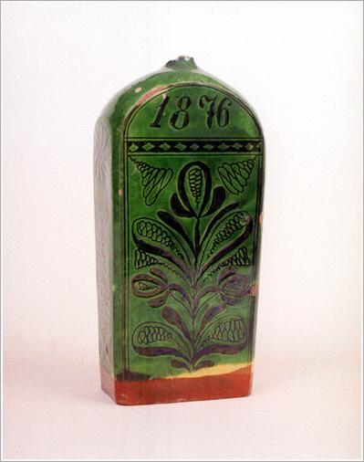 "Origin: Tótkomlós Technique: Prismatic, with wide rounded shoulders, brown glazed at the bottom, rose on the narrow side, framed writing: "" Bodor Pál Roku Pane 1876"" Size: H: 21 cm Bottom: 8.5 cm"