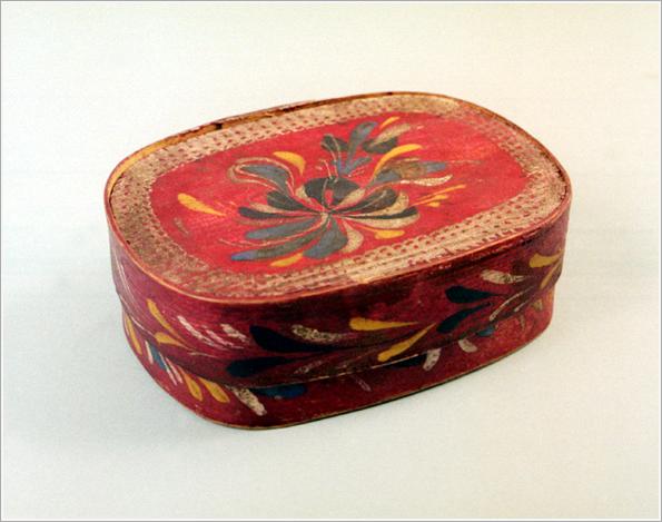 Origin: Békéscsaba Technique: Thin pine lamina, arched, oval, box with a lid, hand painted flowers. Size: H: 8 cm Bottom: 14 cm