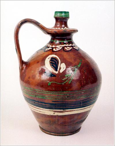 Origin: Tótkomlós Technique: Brown-glazed in and outside, ceramic pot with ornaments drawn with a stick. Size: H: 26 cm Bottom: 9 cm