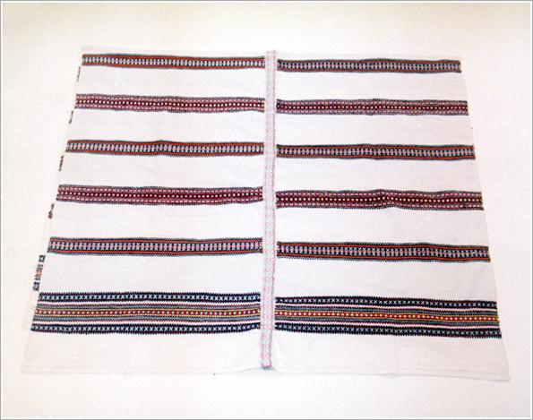 Origin: Békéscsaba Technique: Homespun calico with blue, red, orange cross-fibred srtipes. Size: L: 185 cm W: 110 cm