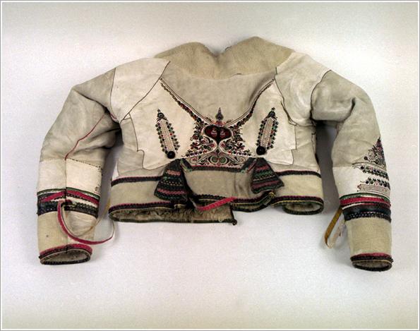 the front of a sheepskin waistcoat