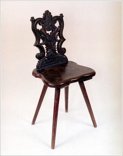 "Origin: Tótkomlós Technique: Made of oak, Baroque styled back with pierced carving, shape of a heart in the middle, writing: ""Anno 1822"" Size: H: 101 cm W: 44 cm"