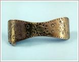 bun-holder "Origin: Mezőberény: Technique: Made from brass-sheet, both rounded ends are arched, knocked motifs and date: ""1899"" Size: L: 16 cm W: 3.5 cm" |